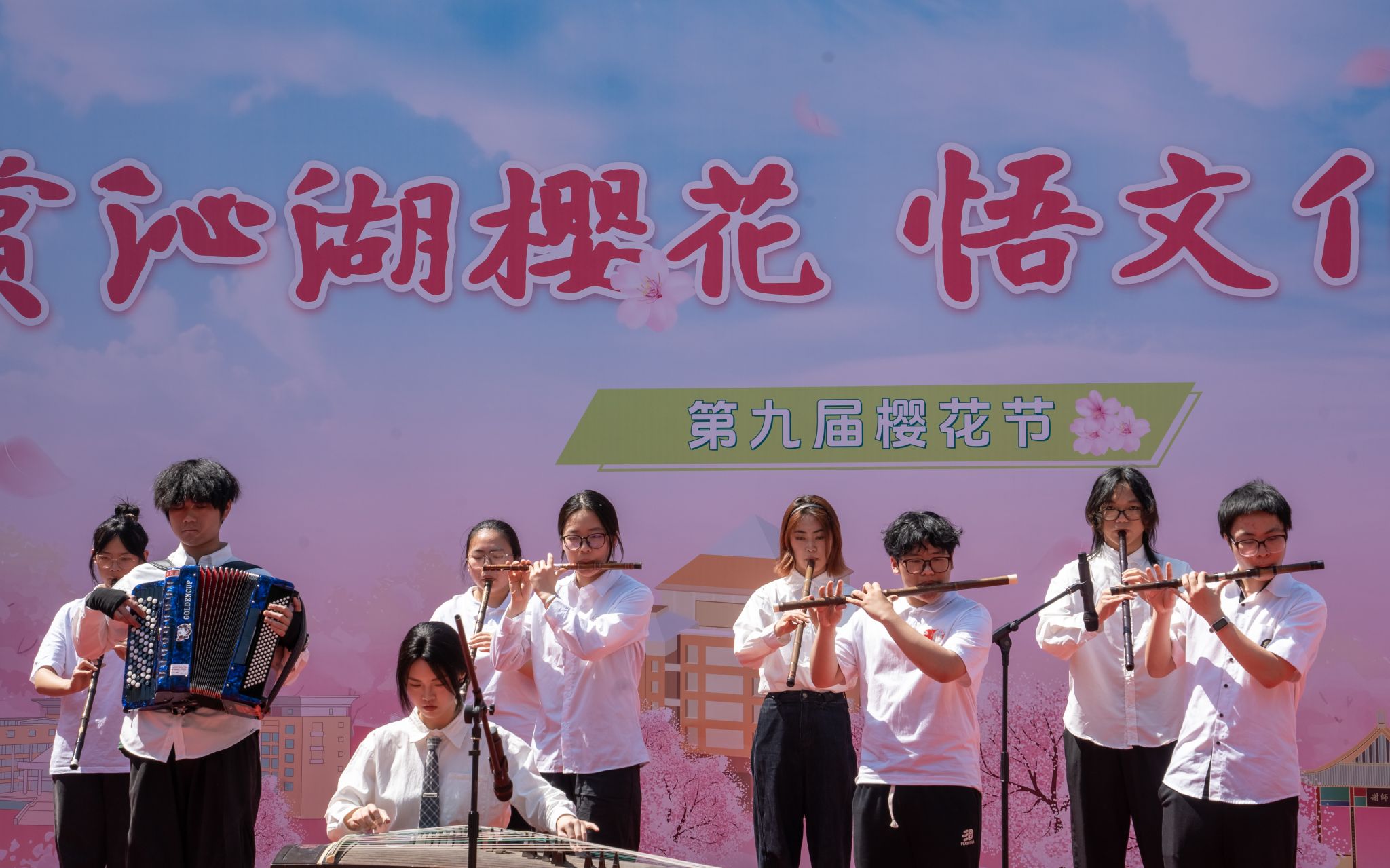 参与樱花节开幕式的学生 王铭浩摄