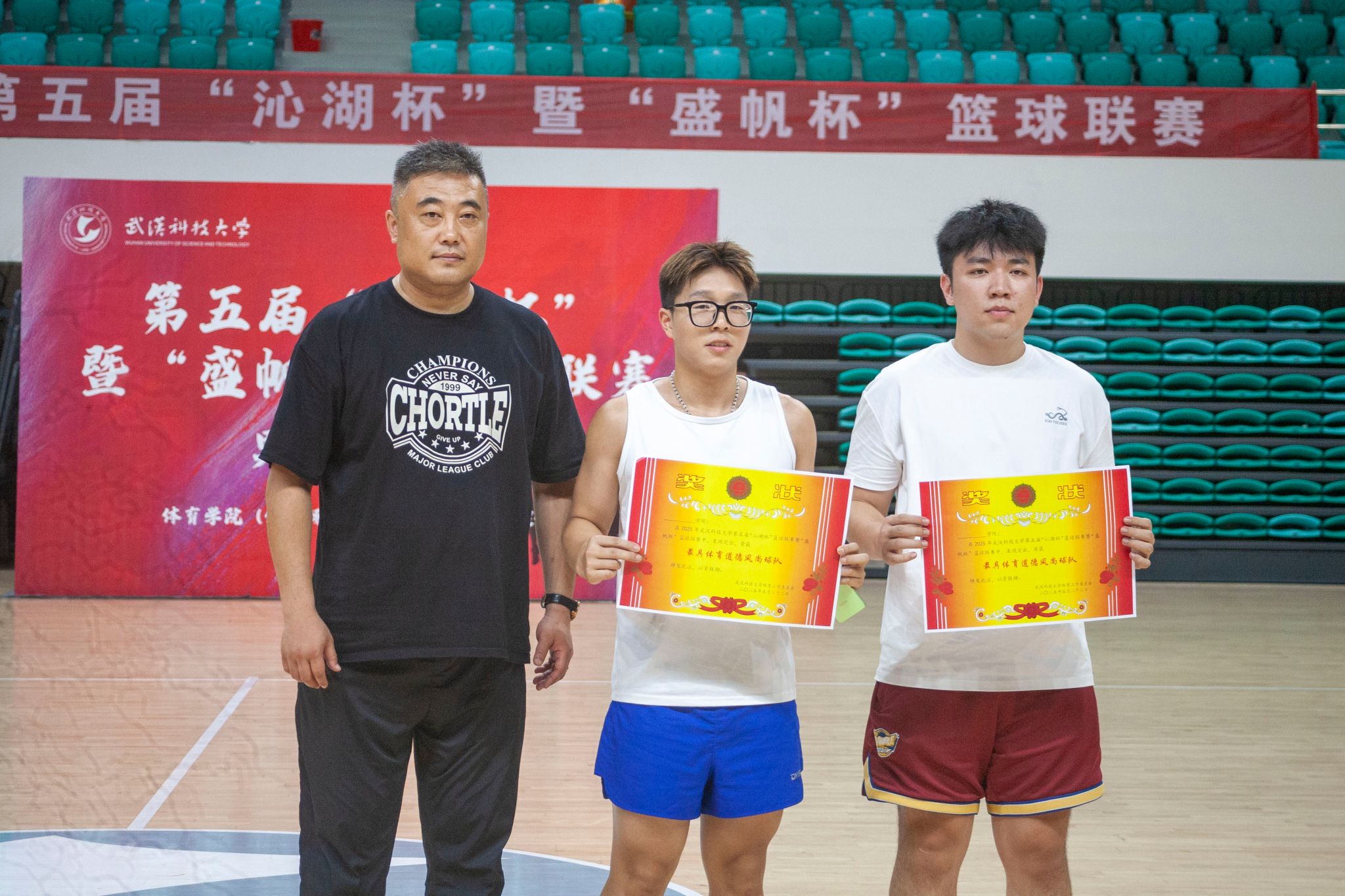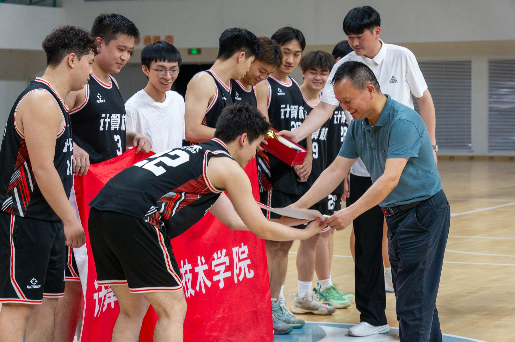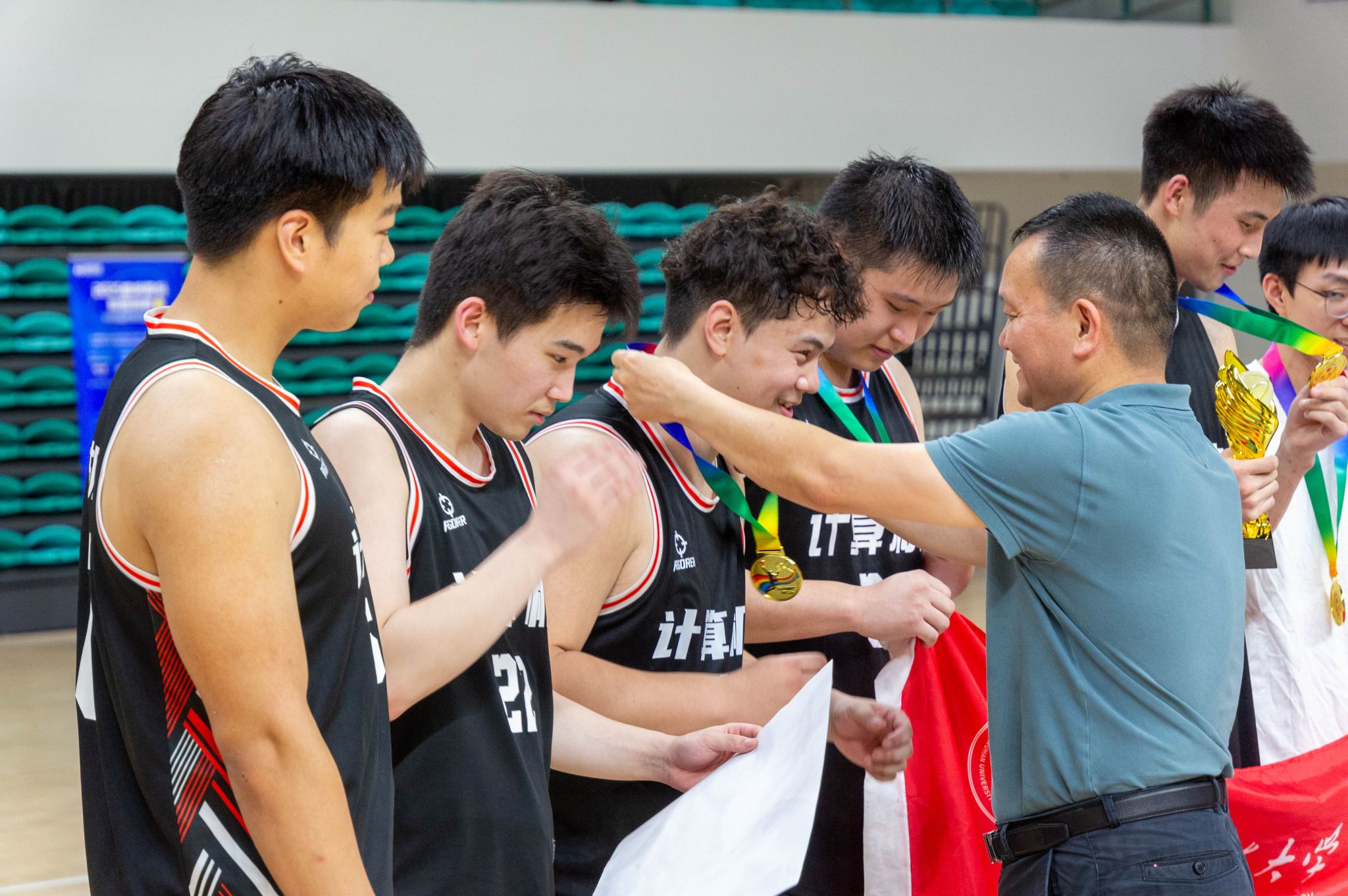 5月22日晚,第五届"沁湖杯"暨"盛帆杯"篮球联赛男子组决赛在我校黄家湖校区沁湖体院馆举行,季军争夺赛由资环学院对阵城建学院,冠亚争夺赛由体育学院对阵计算机学院,现场热闹非凡,赛况激烈,最终计算机学院以74:61战胜体育学院获得比赛冠军。(刘川峰 王翔宇)