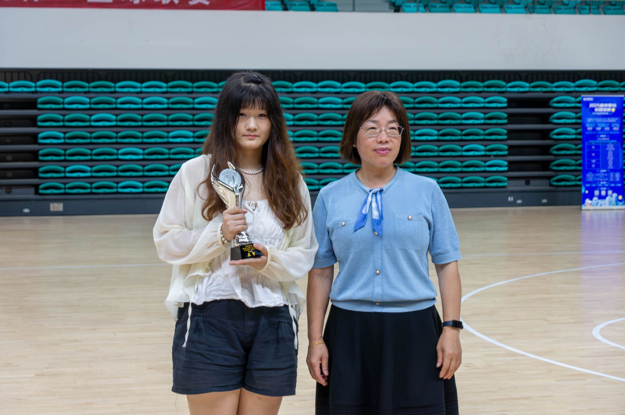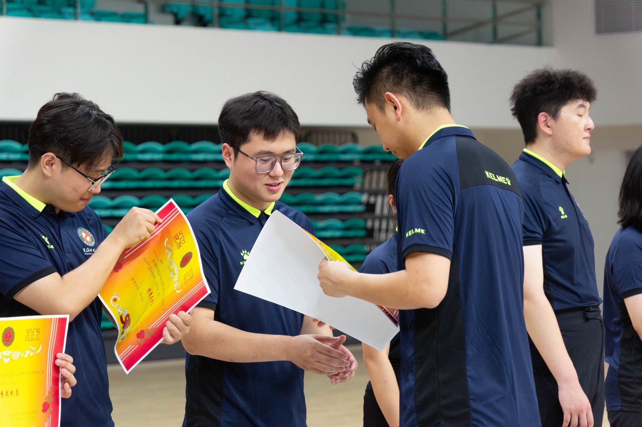 饶威为优秀裁判员颁奖 特写 王翔宇摄