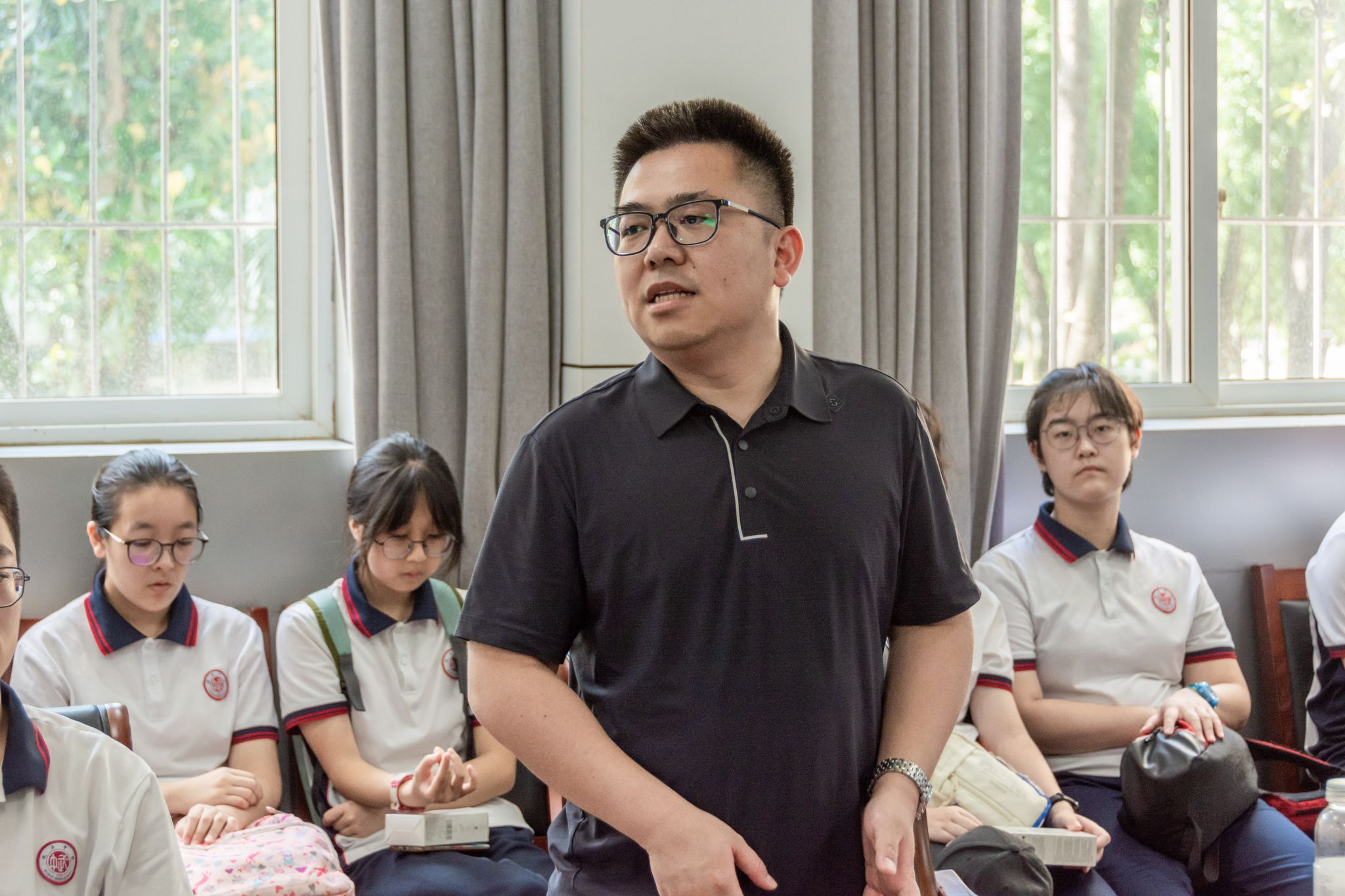 7月2日上午,武汉中学师生来校开展“以科普之基筑科技强国之路,用科学之光引创新发展之航”为主题的研学活动。本次研学活动主要围绕化学学科展开,本科招生办公室主任朱明、化学与化工学院副教授高天、材料学部副教授雷文等出席本次活动,化学与化工学院团委书记易早月主持。