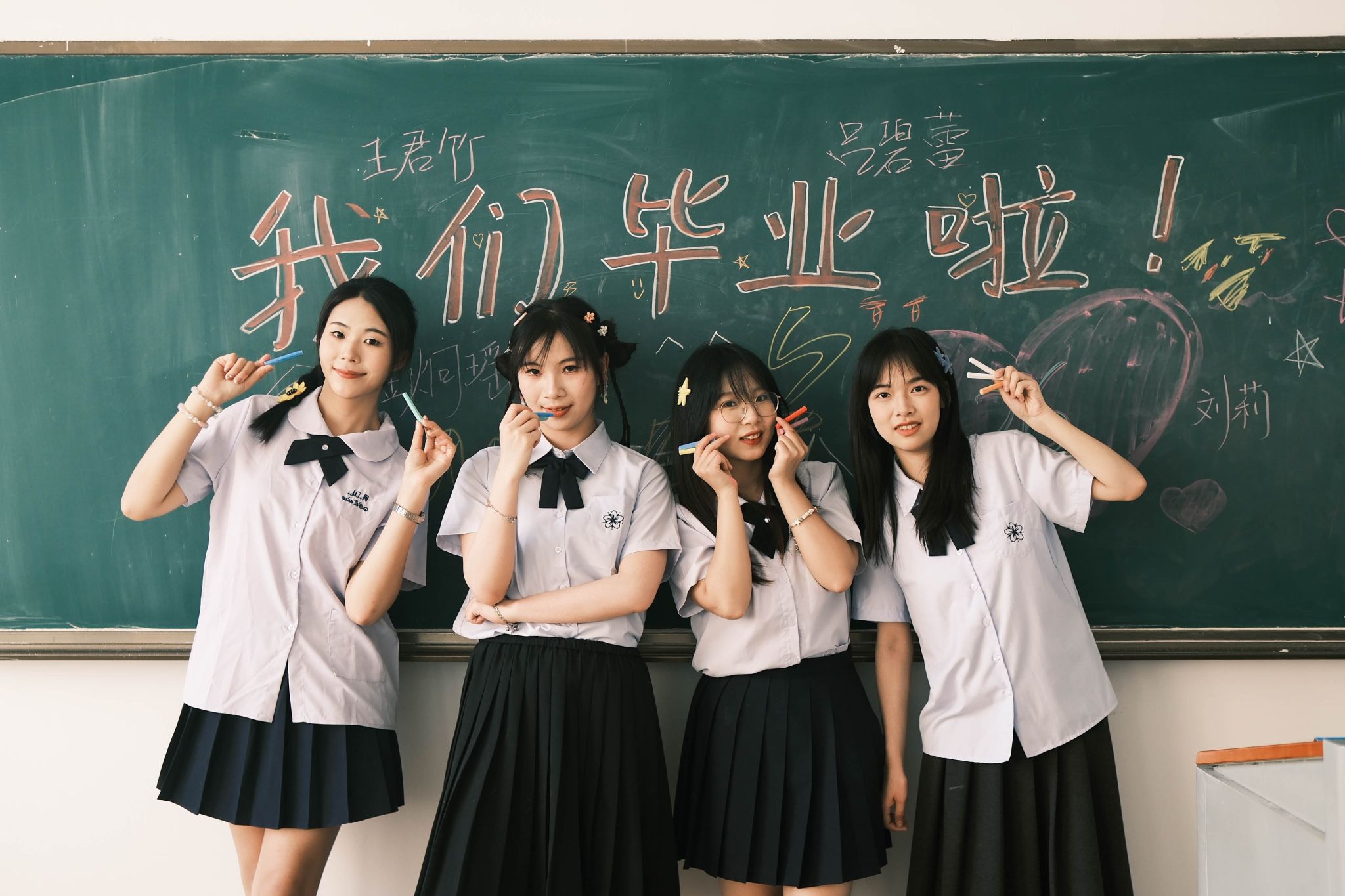 黑板毕业合照靠右 陈薏帆摄