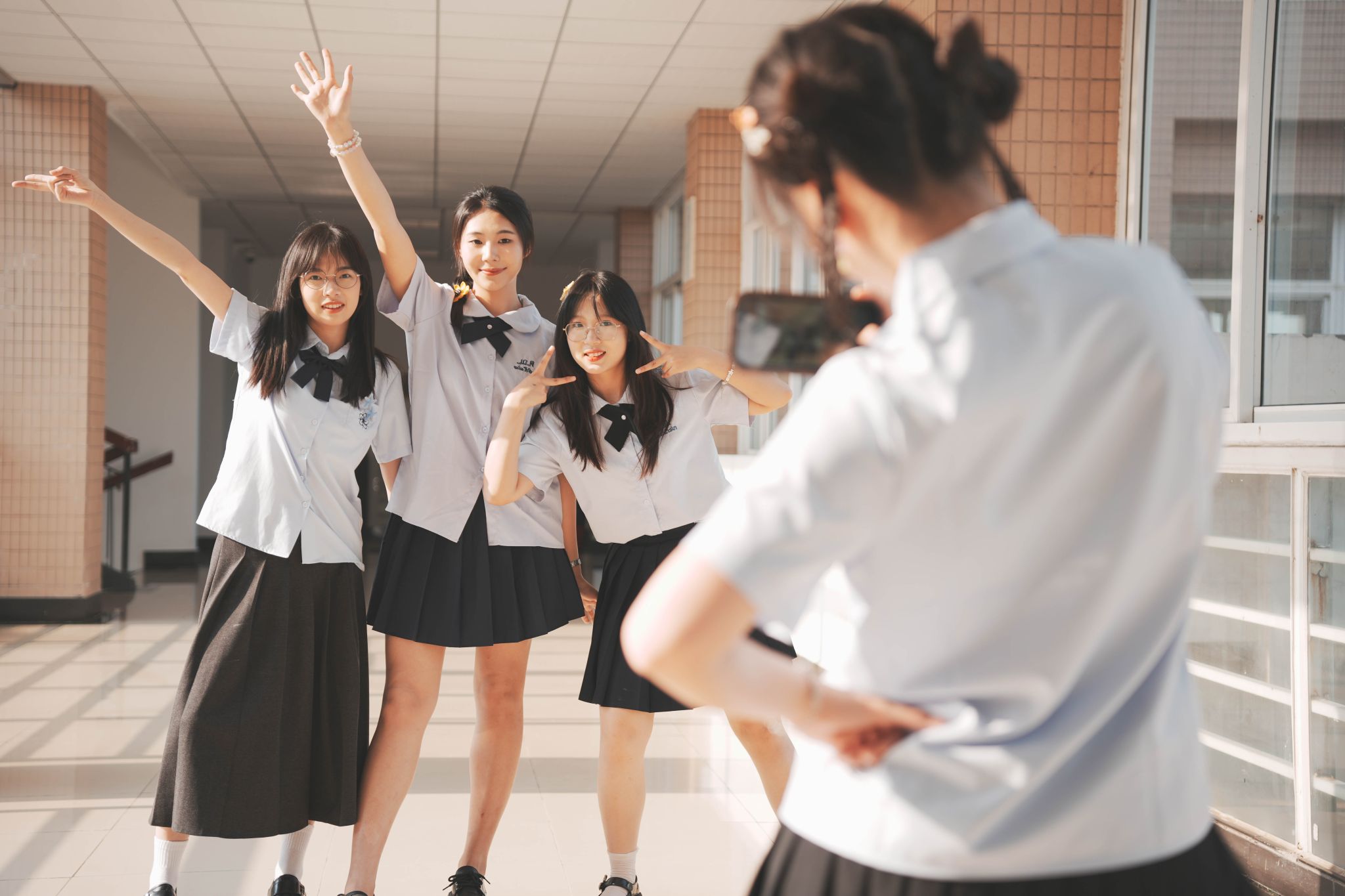 教室合影转身 刘川峰摄