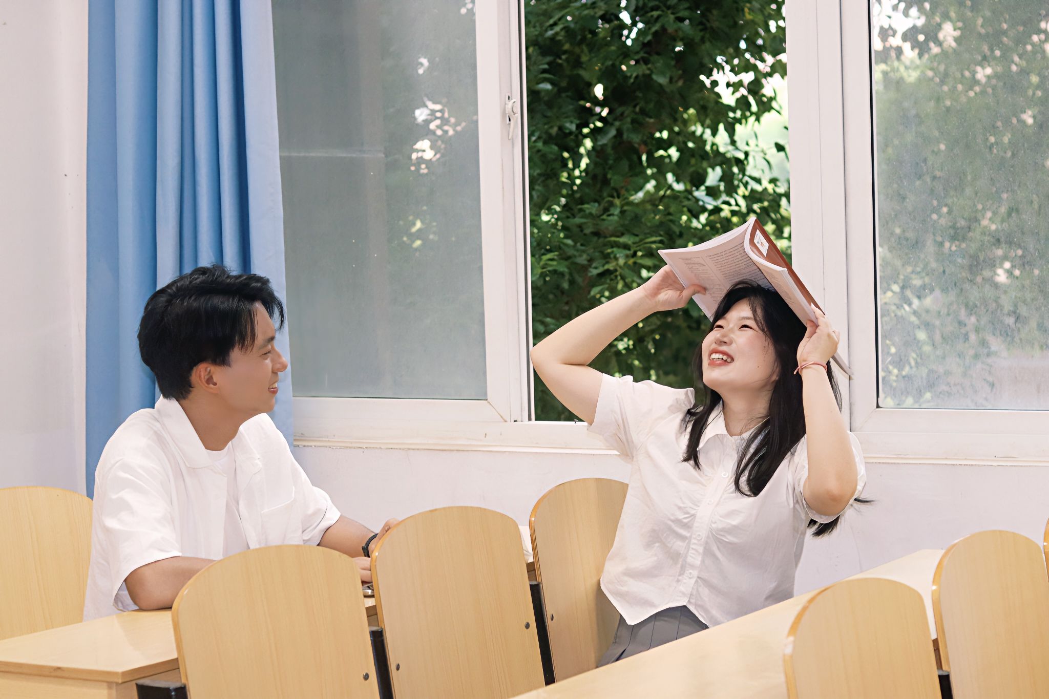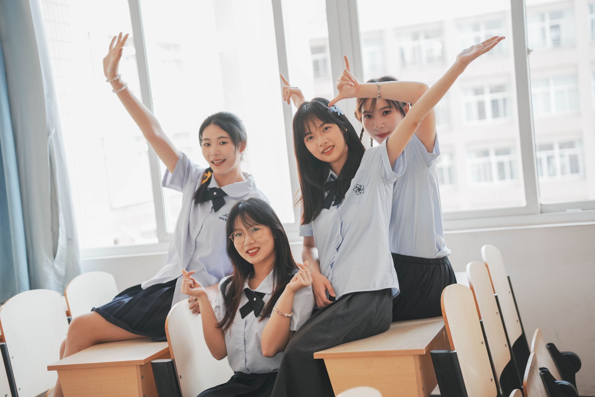 在教室座位上的群像姿势 张贝贝摄