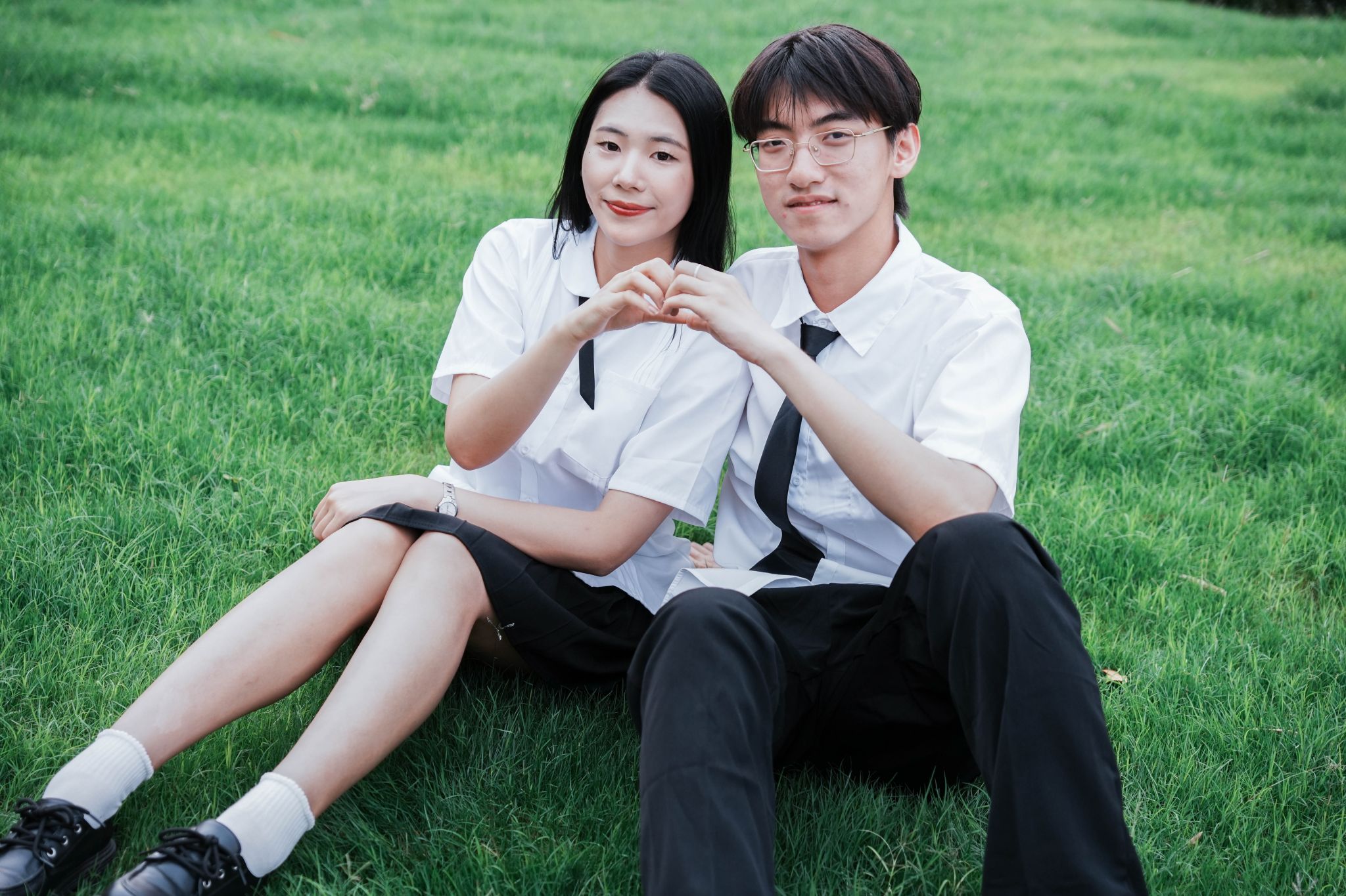 草坪上比心 张贝贝摄