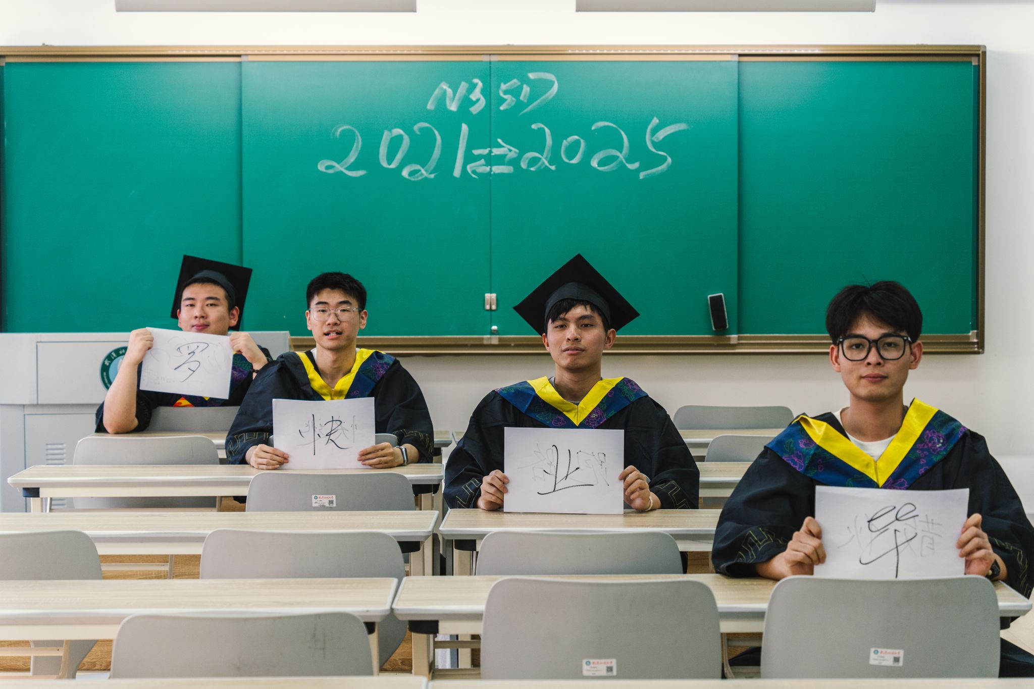 黑板毕业合照中间 陈薏帆摄