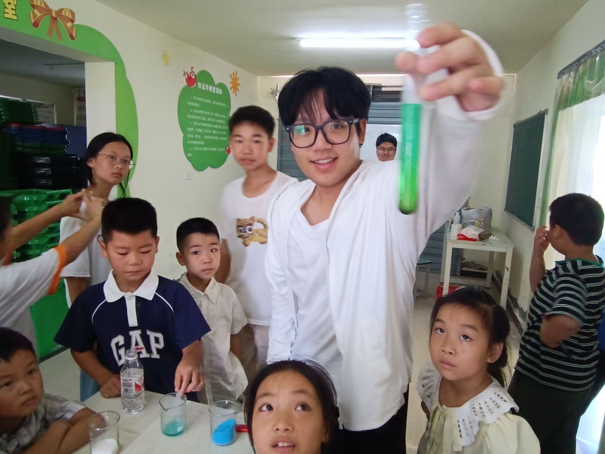 支教老师在和现场学生进行趣味实验 胡泰山摄