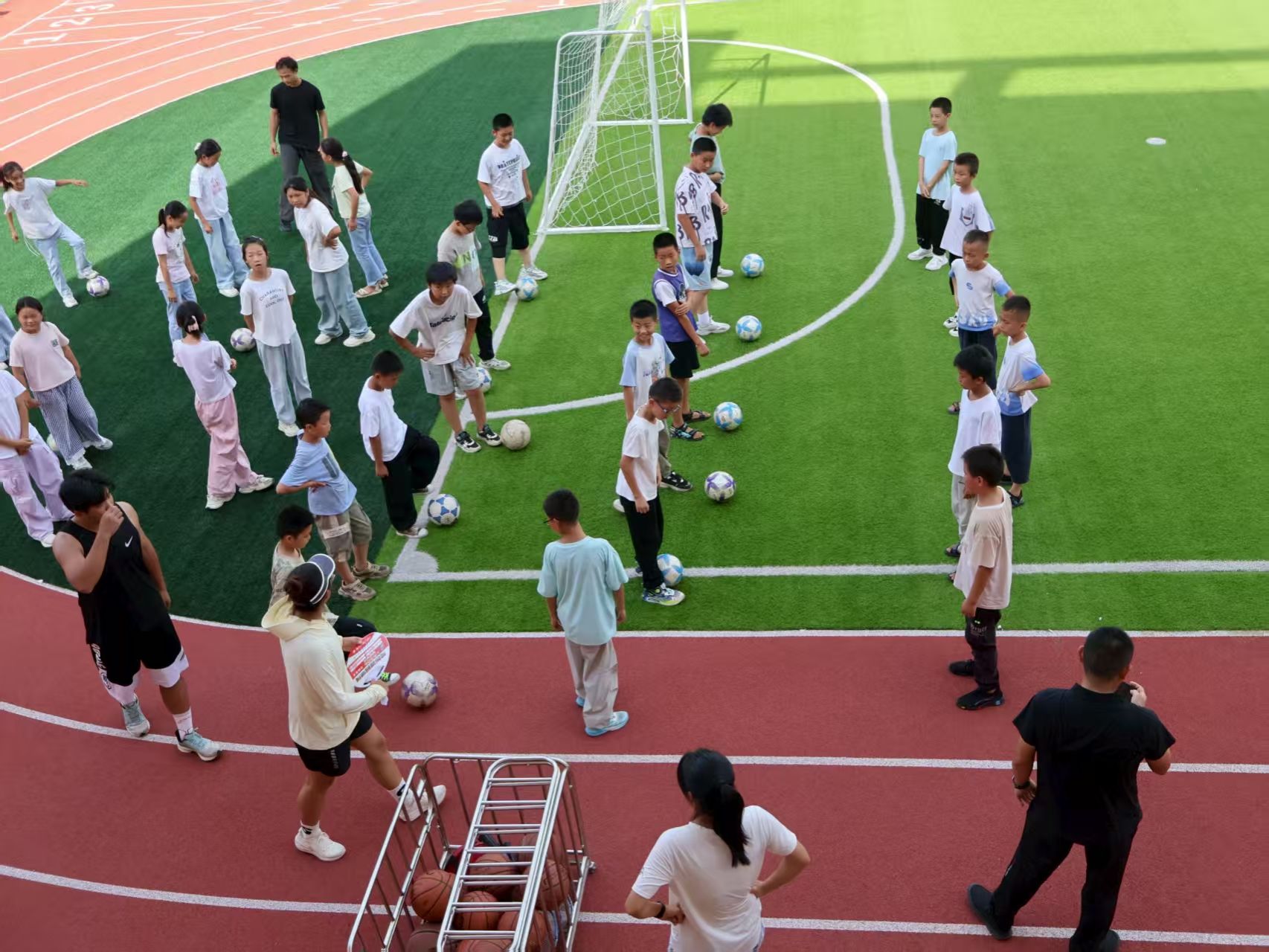 支教成员教学生踢足球 谢迎新摄