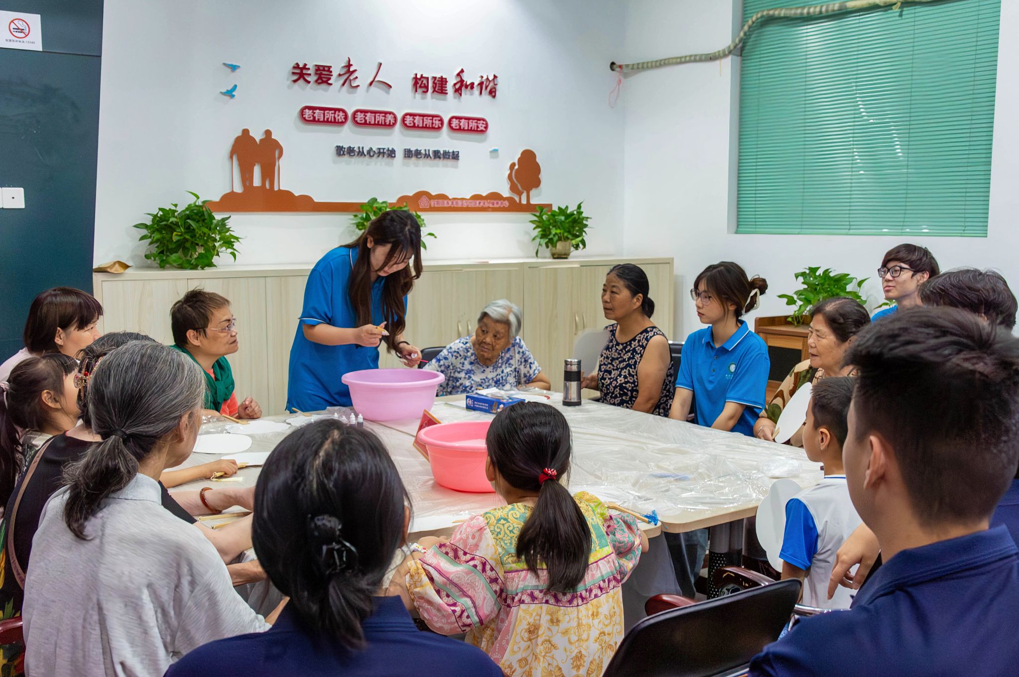 汉沙社区新时代文明实践站活动中心,刘子欣在教漆扇制作全景 王翔宇摄