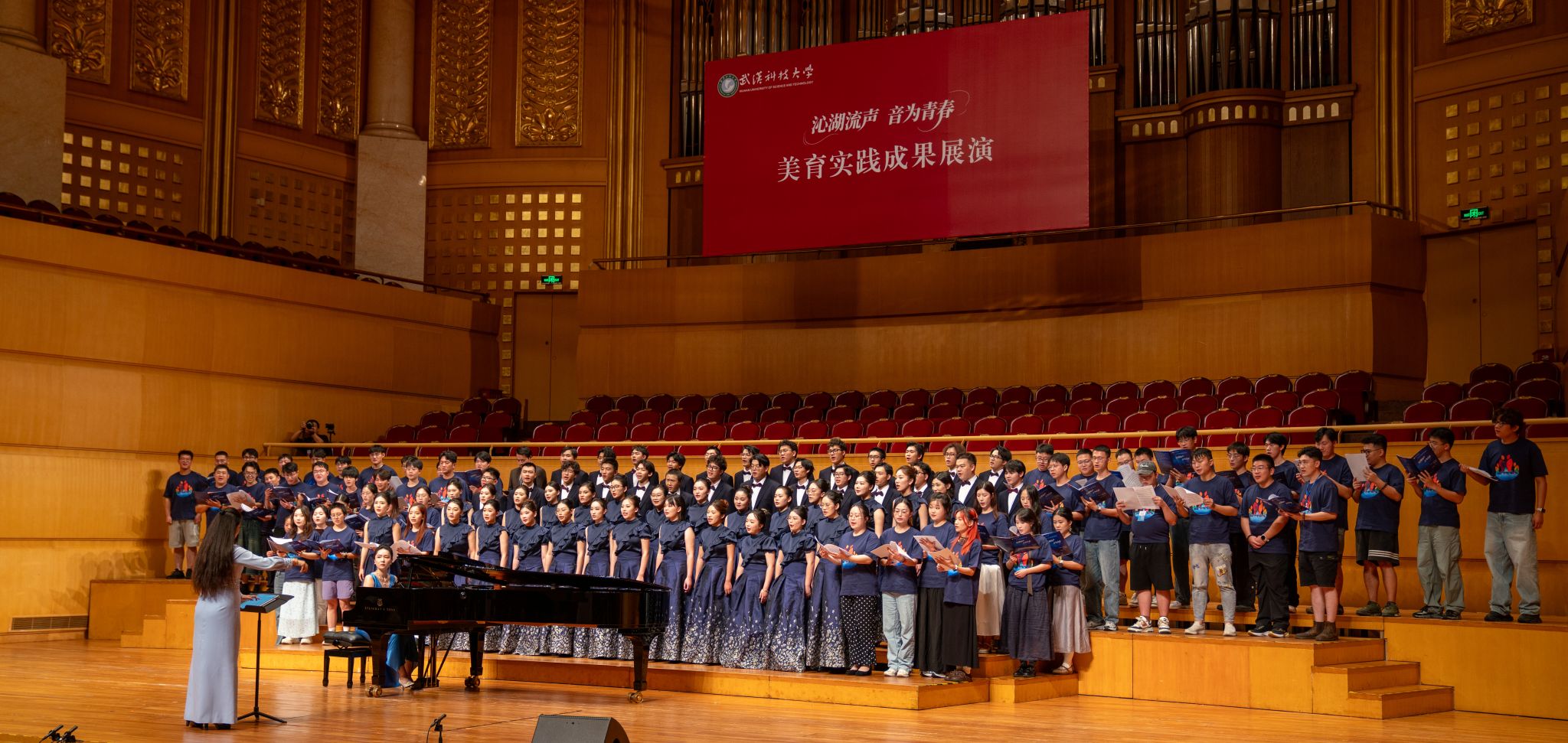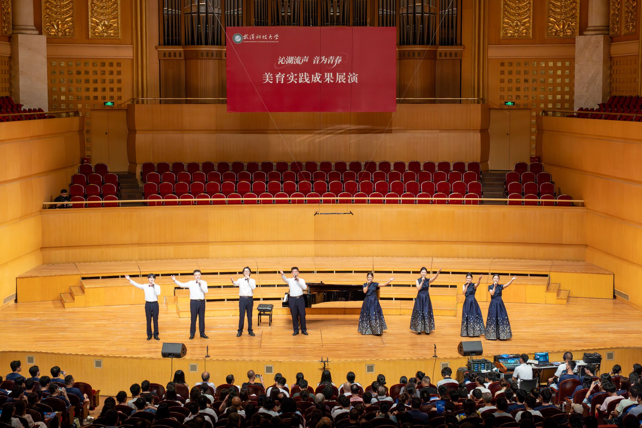 9月6日晚,我校“沁湖流声·音为青春”美育实践成果展演在武汉琴台音乐厅举行。校长倪红卫,党委副书记孙国胜,副校长吕勇、马腾,湖北省教育厅体育卫生与艺术教育处二级调研员姜贵君,湖北经济学院党委副书记汪达等出席活动,与数千余名师生、校友与音乐爱好者一同观看演出。