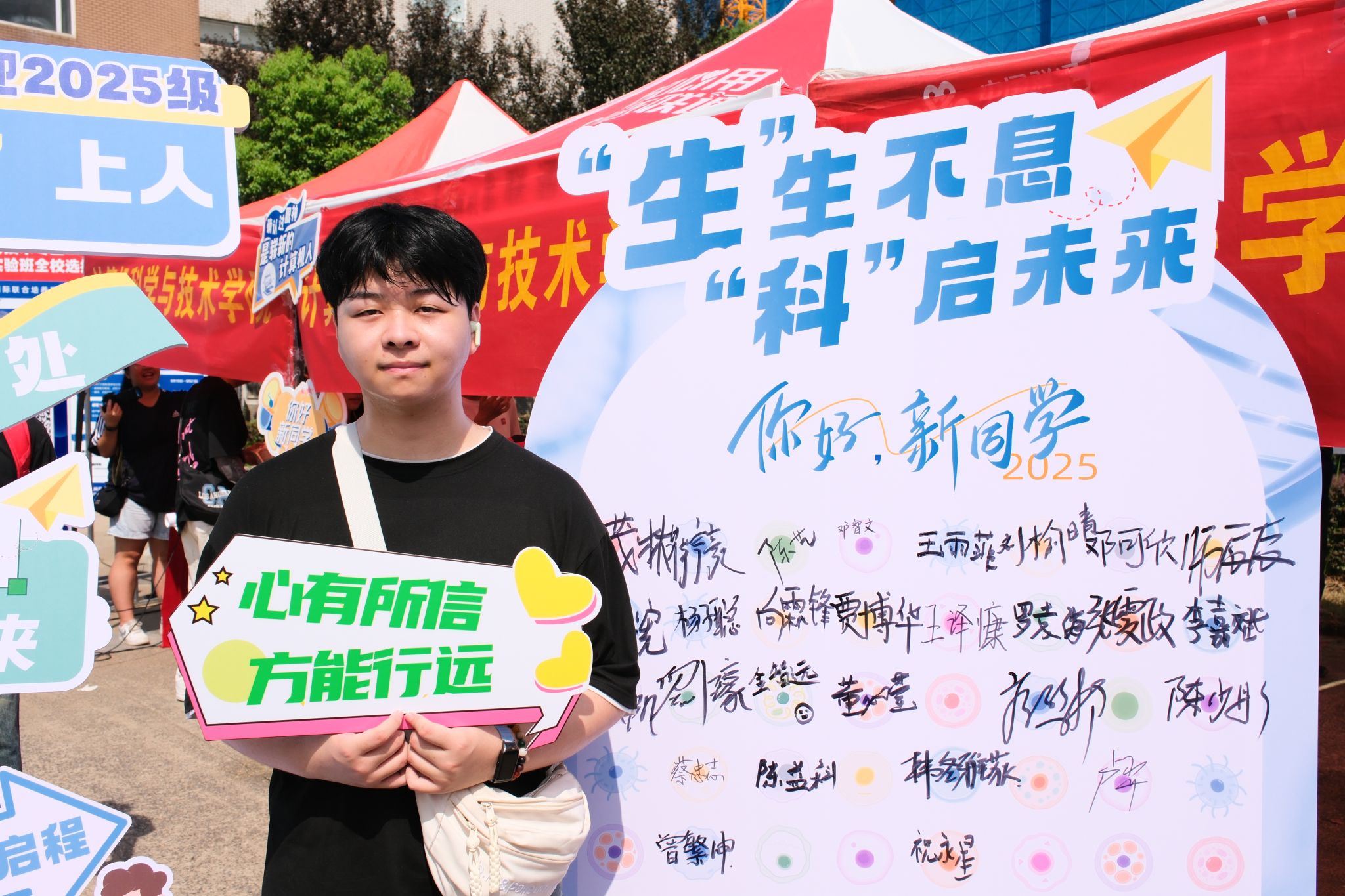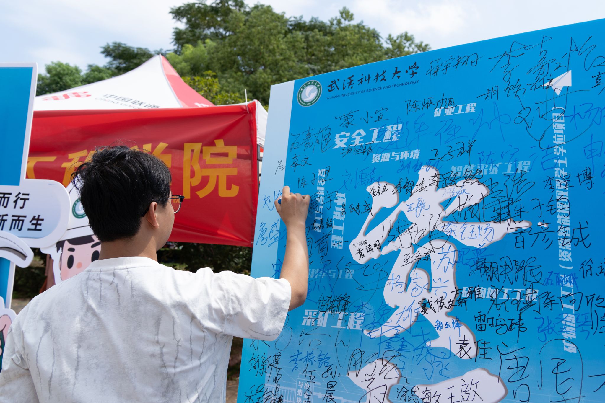 电子信息学院新生在签名墙留下自己名字 高文帅摄