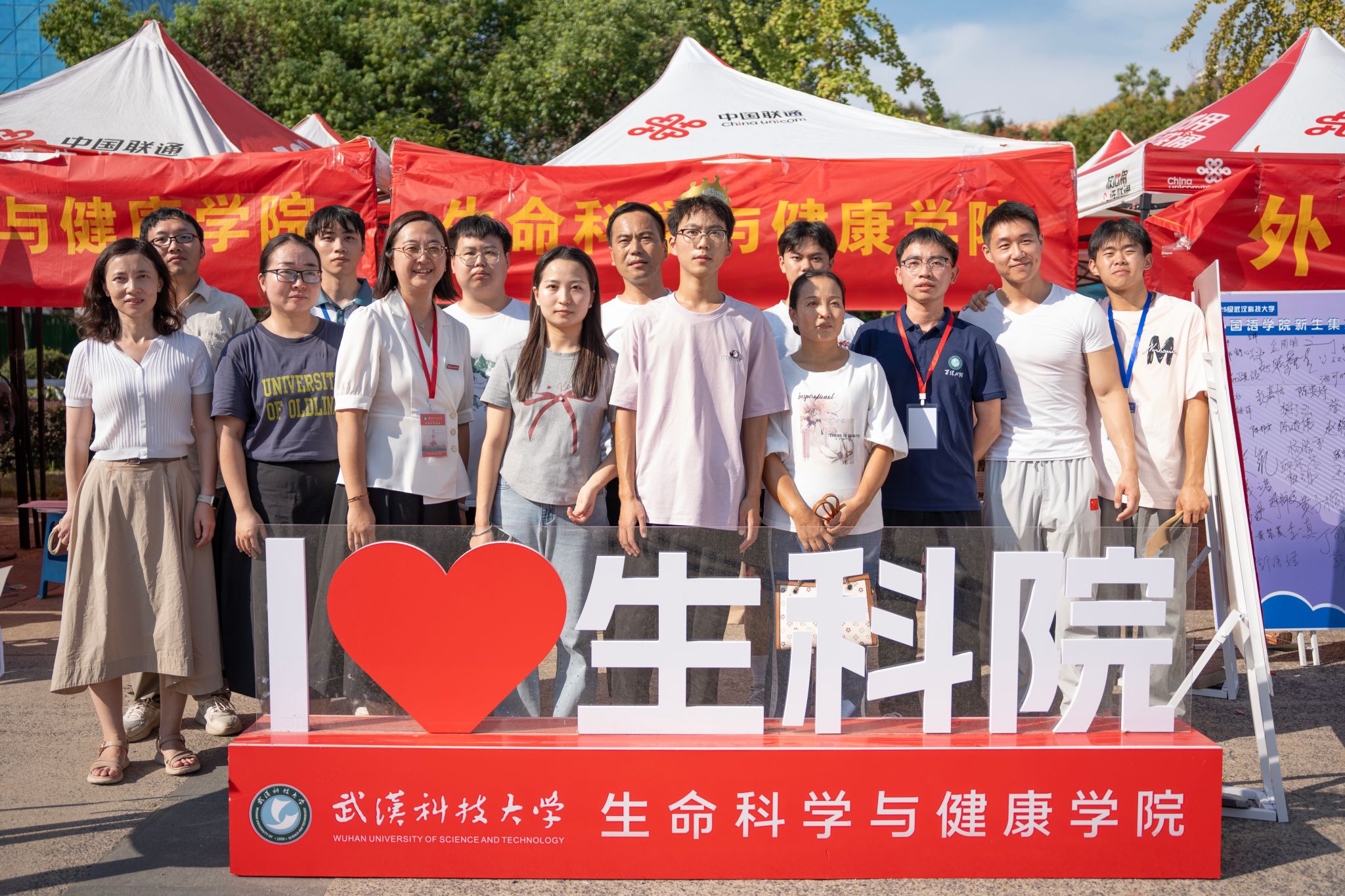 新生及其家长与生科院的老师同学们合影留念 张贝贝摄