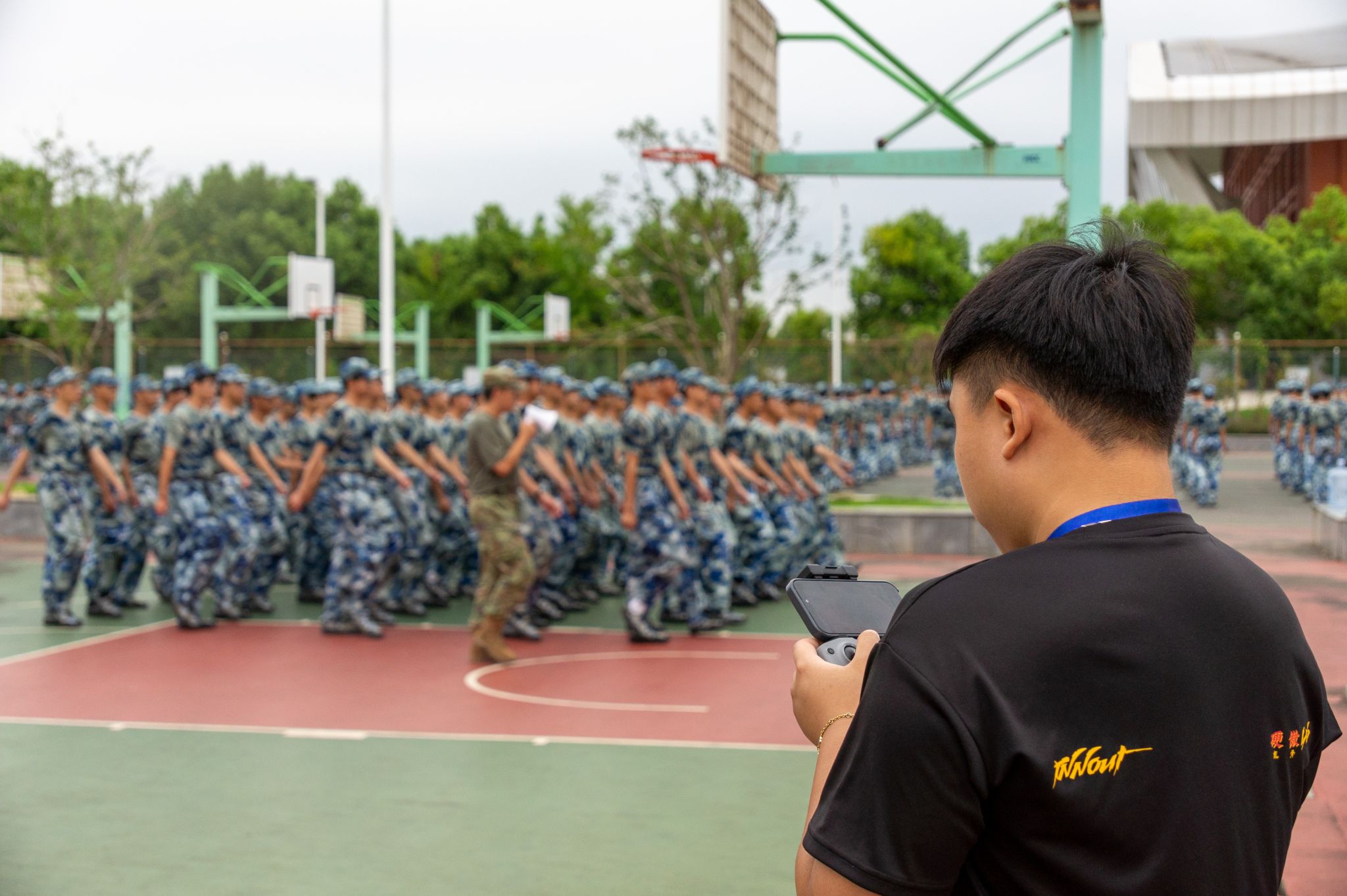 无人机飞手录制军训视频 特写