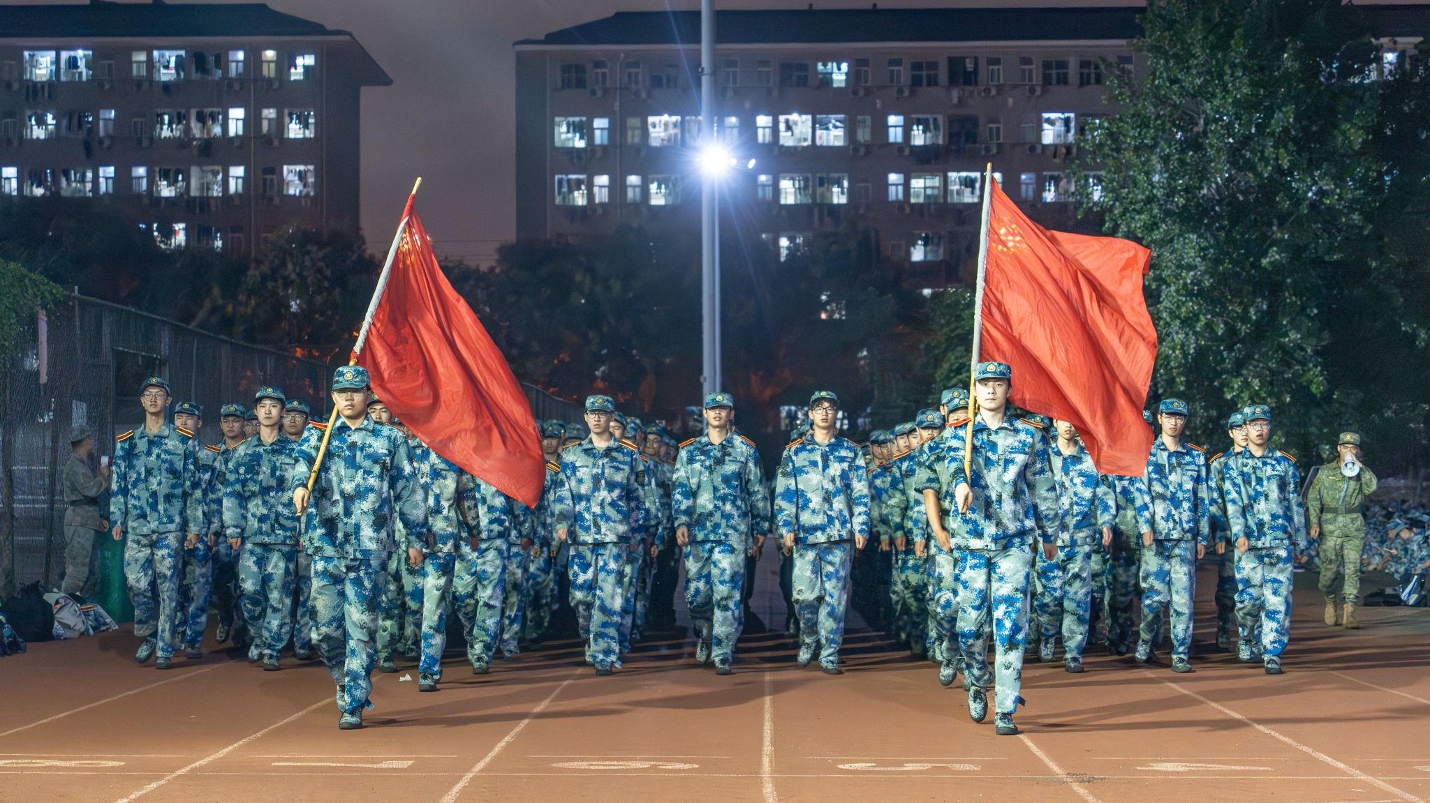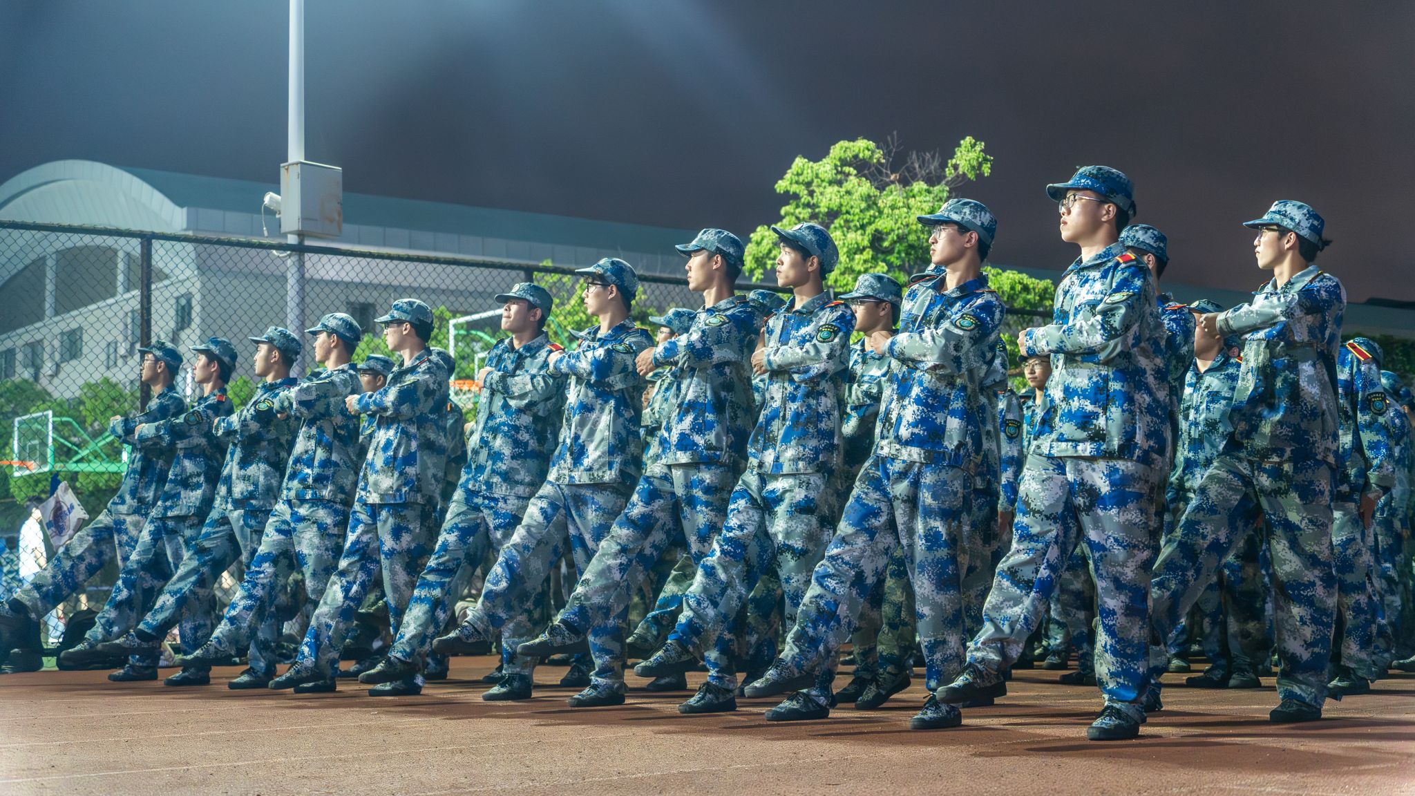 分列式夜训队列侧面特写 刘铮摄