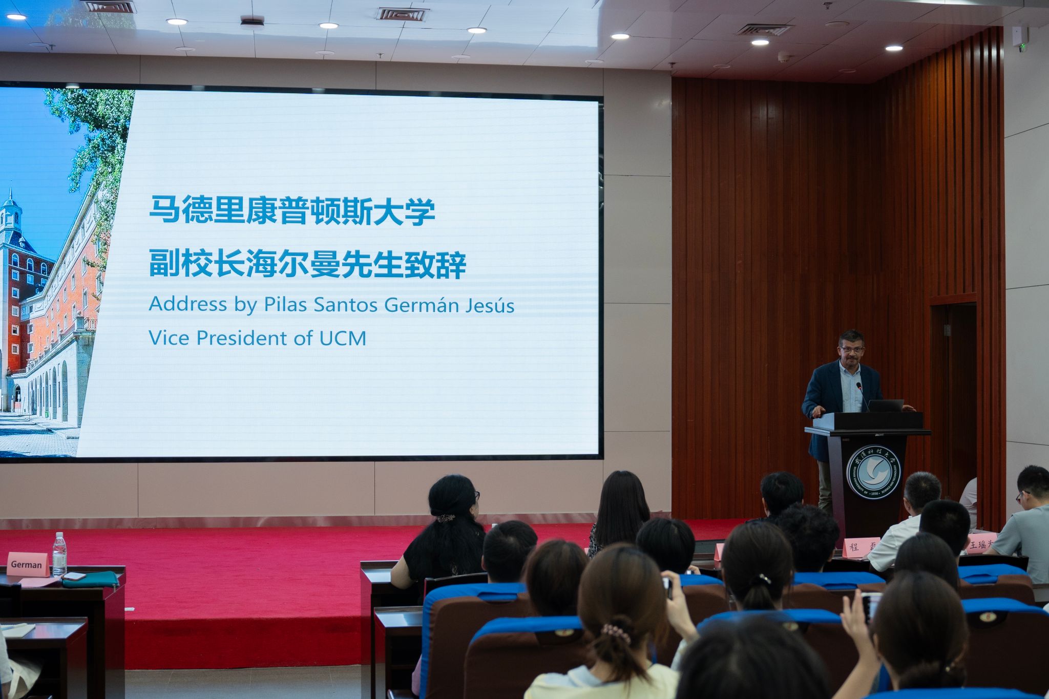西班牙马德里康普顿斯大学副校长Pilas Santos German Gesus先生致辞特写 王铭浩摄