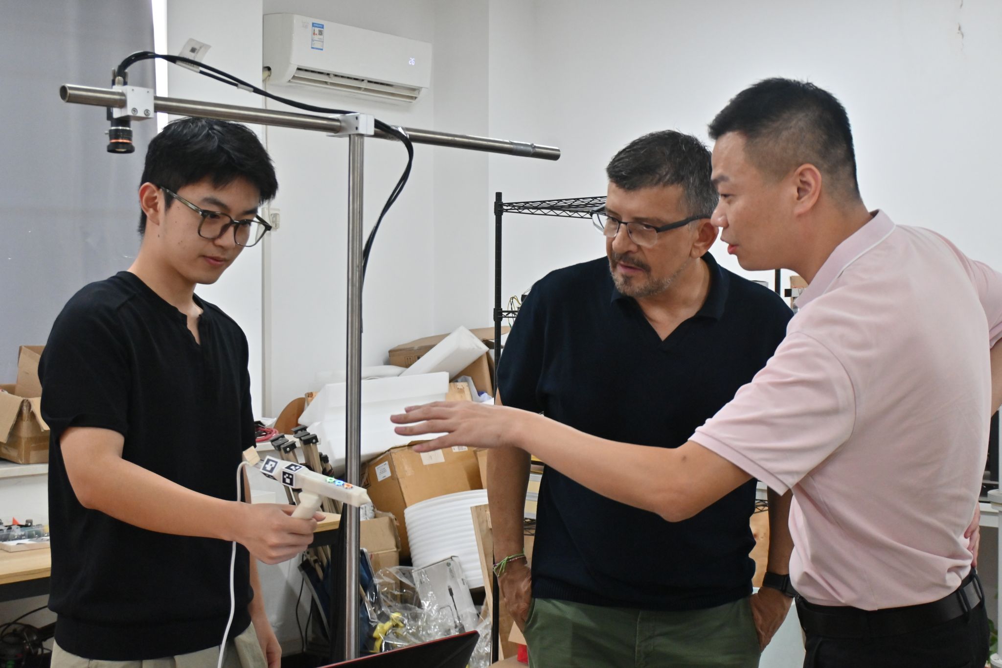 与机器人握手 唐思彤摄