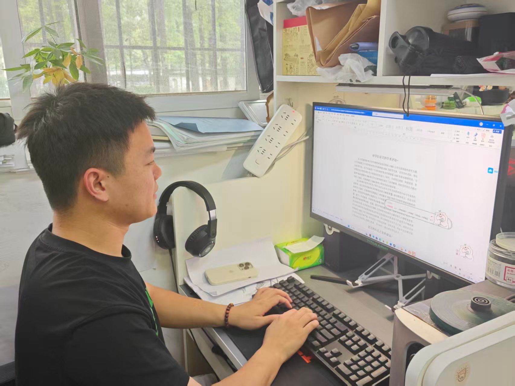 服役期间形成的“请示汇报”习惯,让张贺养成了“事事有回应,件件有着落”的做事风格。身兼学院研究生会执行主席与实验室主力的他,在繁忙中坚持“保底线、抓重点”。