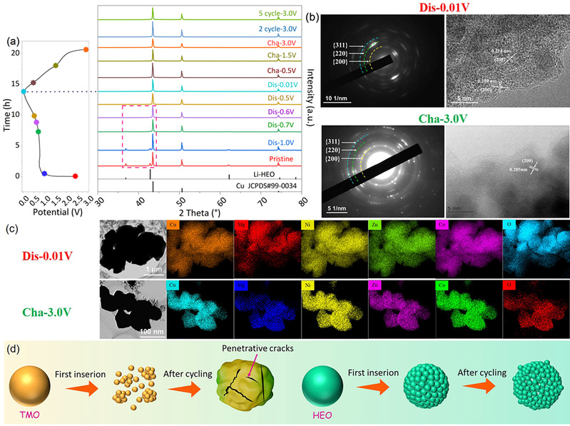 高熵氧化物(HEO)具有广泛的成分调制范围和固有的复杂表面,逐渐成为锂离子电池阳极的新焦点,但长期充放电循环过程中迟缓的动力学限制了它们的进一步应用。基于此,团队通过湿化学熔盐策略,将具有目标功能的氧空位引入岩盐型(MgCoNiCuZn)O中,以加速锂离子/电子传输。