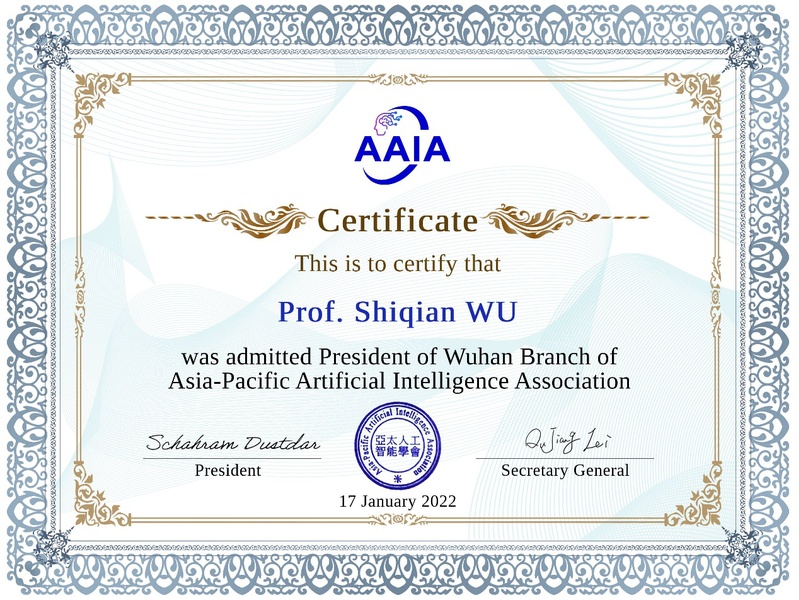 武科大网讯(通讯员方顺) 日前,信息科学与工程学院人工智能学院伍世虔教授被亚太区人工智能学会(Asia- Pacific Artificial Intelligence Association,AAIA)聘为武汉分会主席(President of AAIA Wuhan Branch)。