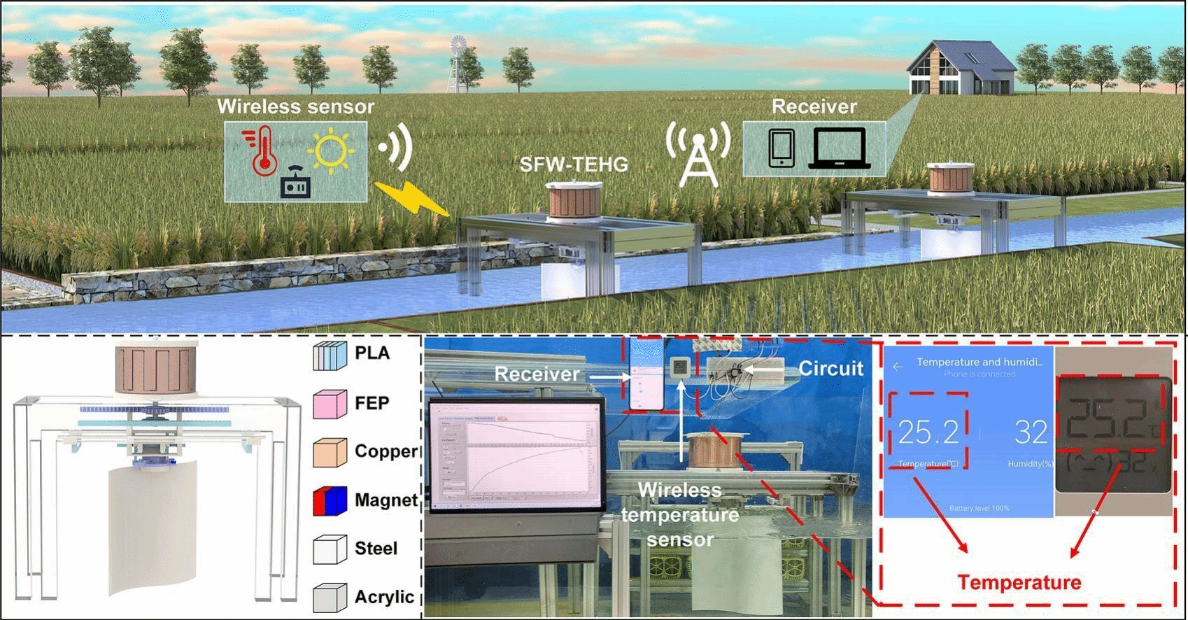 针对低速水流能俘获困难的问题,团队提出了一种萨伏纽斯扑翼式摩擦-电磁复合发电机(SFW-TEHG),利用萨伏纽斯扑翼低启动流速和高升力的优点,通过萨伏纽斯扑翼的往复扑动实现对低速水流能量的有效收集。搭建了自供能无线传感系统,通过SFW-TEHG为该系统供电,实现对温度、光照强度等环境参数的无源监测。本研究提出的SFW-TEHG在为物联网小型传感器供电方面有良好的应用前景,并为低速水流能俘获提供了新的解决方案。该成果以“Triboelectric-electromagnetic hybrid generator with Savonius flapping wing for low-velocity water flow energy harvesting”为题发表于能源领域国际顶级期刊《Applied Energy》(IF=11.4)。我校博士生张加诚为第一作者,国产亚洲精品久久久久久久_无码AV免费精品一区二区三区_99久久久无码国产精品免费人妻_精品人妻无码一区二区三区在线_无码专区久久综合久综合字幕_久久精品国产一区二区三区四区_真实一级一级一片免费视频_特级精品毛片免费观看_国产成人无码AA片免费看为第一单位,王中林院士、程廷海研究员和朱建阳教授为共同通讯作者,蒋林教授为论文共同作者。