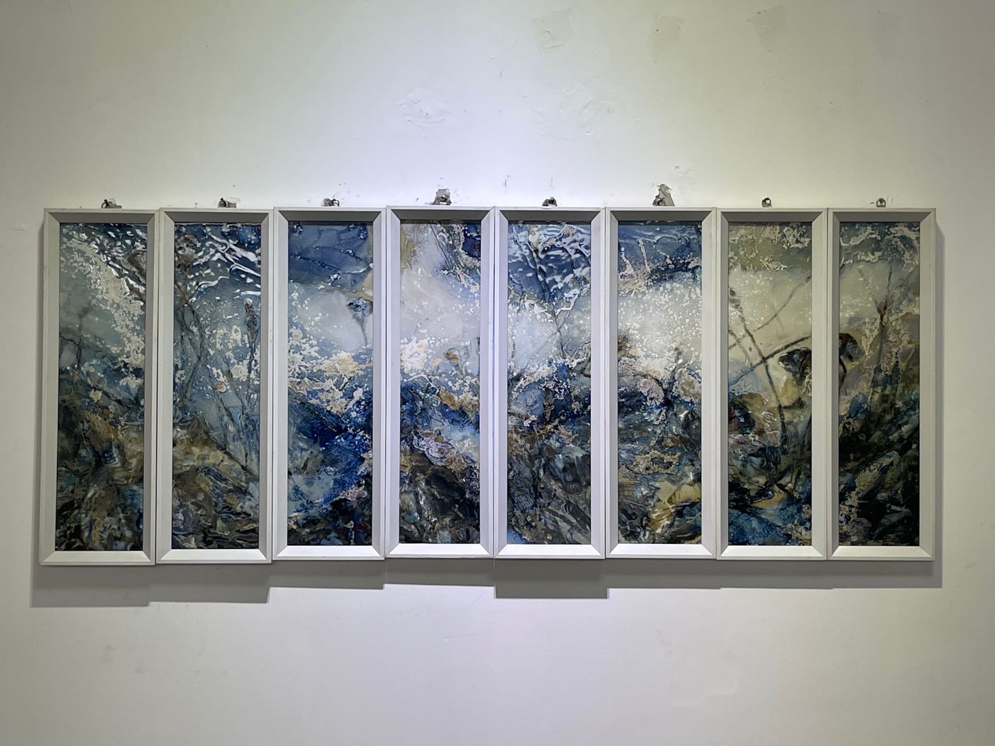 管家庆的作品以瓷板为纸、釉料为墨,综合运用釉料泼洒、点涂、块抹等手法,实现包括无光釉、裂纹釉、结晶釉等在内的多达几十种不同色釉的重叠并置,最终经由火的淬炼,呈现出高温颜色釉的独特艺术特质。