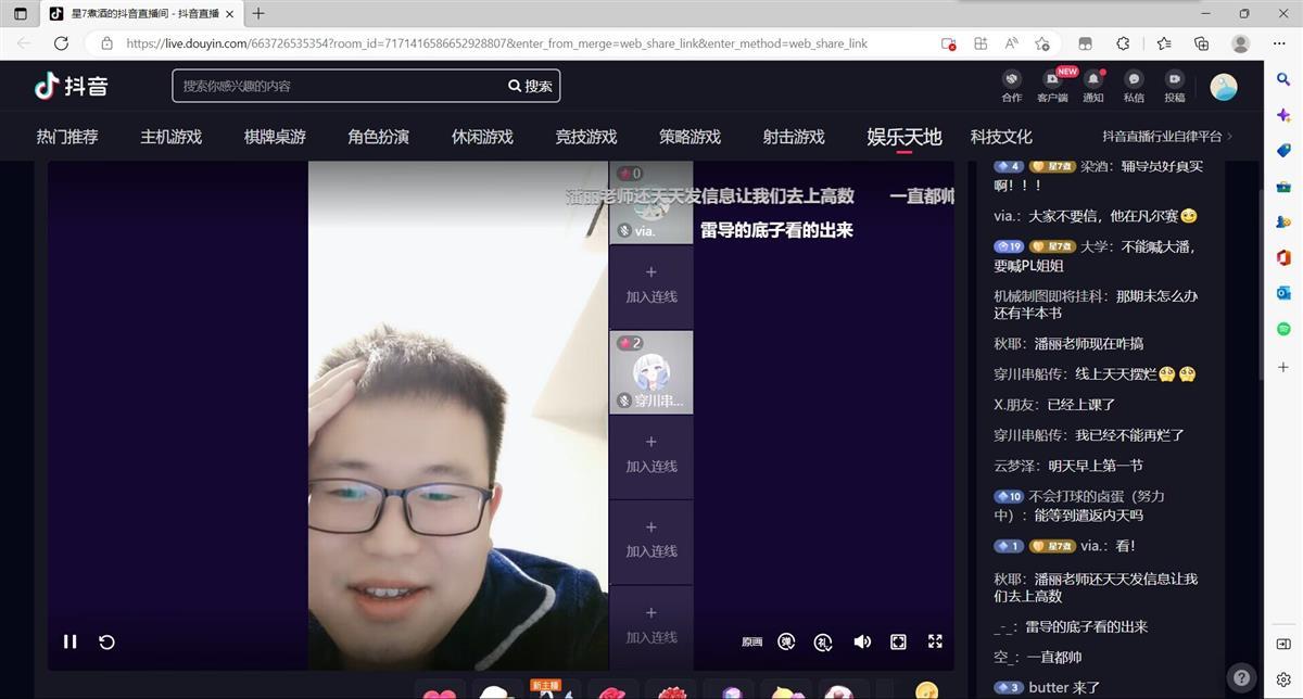 窦薇的脸出现在直播间的画面里,她看见评论区的学生们热情地反馈,很高兴地跟他们互动。“什么时候放假?”“期末要考高数了焦虑怎么办?”“分流时怎么分宿舍?”……有关学习的问题、有关恋爱的问题和对于刚上大学的迷茫心态的问题,在评论区里接二连三弹出,窦薇笑着一一回答,近一个小时的直播间收获了4.2万点赞量。
