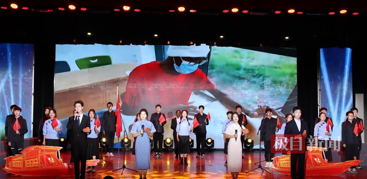 “中外双语讲党史,国际学子用自己的方式展现党的百年奋斗史。”一首《红船生辉 引航国际》诗朗诵展现了国际学院的风采面貌。