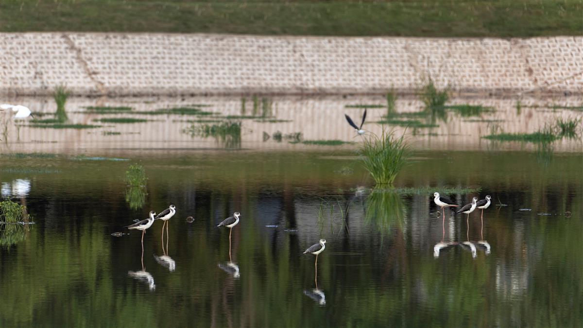 华创湿地公园临水驳岸设计,以抛石和缓坡入水,水陆布局高低错落、曲幽通径,行走其间移步换景,游憩空间体验感十足,妙不可言。“一靠近就有种净化心灵的感觉,自然景观真的看着非常舒服。”每天早上六点来到这里赏景已经成为了张文超的日常。