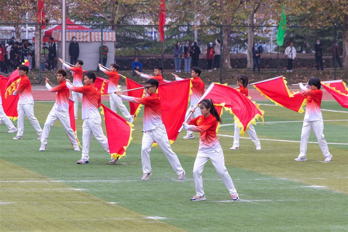 健美操表演中,学生们快速且变换着队形,“十字队”“同心圆”“波浪舞”呈现在观众面前。健美操表演带队教师张玲玲介绍,多种队形的变换则寓意大家勠力同心,将运动会举办得十全十美,胜利和鲜花终将属于每一位参与运动会的师生。