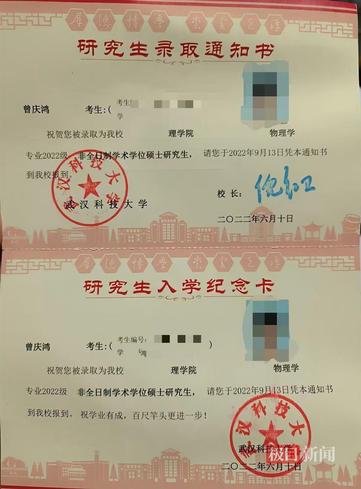曾庆鸿研究生录取通知书