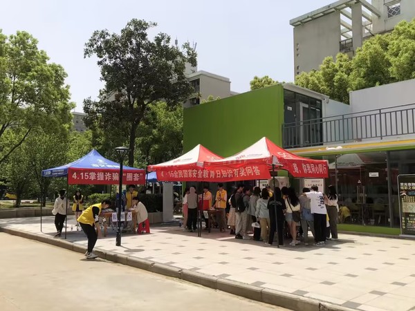 4月15日,学生安全自治委员会的志愿者们在保卫处老师的指导下,于我校学生社区安全教育工作站开展了国家安全教育系列活动。知识问答、视频展播、主题海报和展板展示等内容,吸引了大批师生驻足学习。安委会成员及志愿者还在南园一站式服务中心摆放帐篷,设置套圈区、答题区、兑奖区三个区域,让参与学生在赢取丰厚奖品的同时了解国家安全及反诈知识。