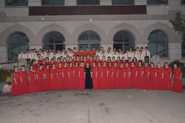 上场之前,90余名师生在指挥姜瑾的带领下进行开嗓练习,我校老年团的老师们和沁湖之声合唱团的学生成员们用哼鸣的方式建立腔体的共鸣。在此前长达一个多月的多次共同训练的基础上,老教授和学生们的声音达到了高度的和谐。