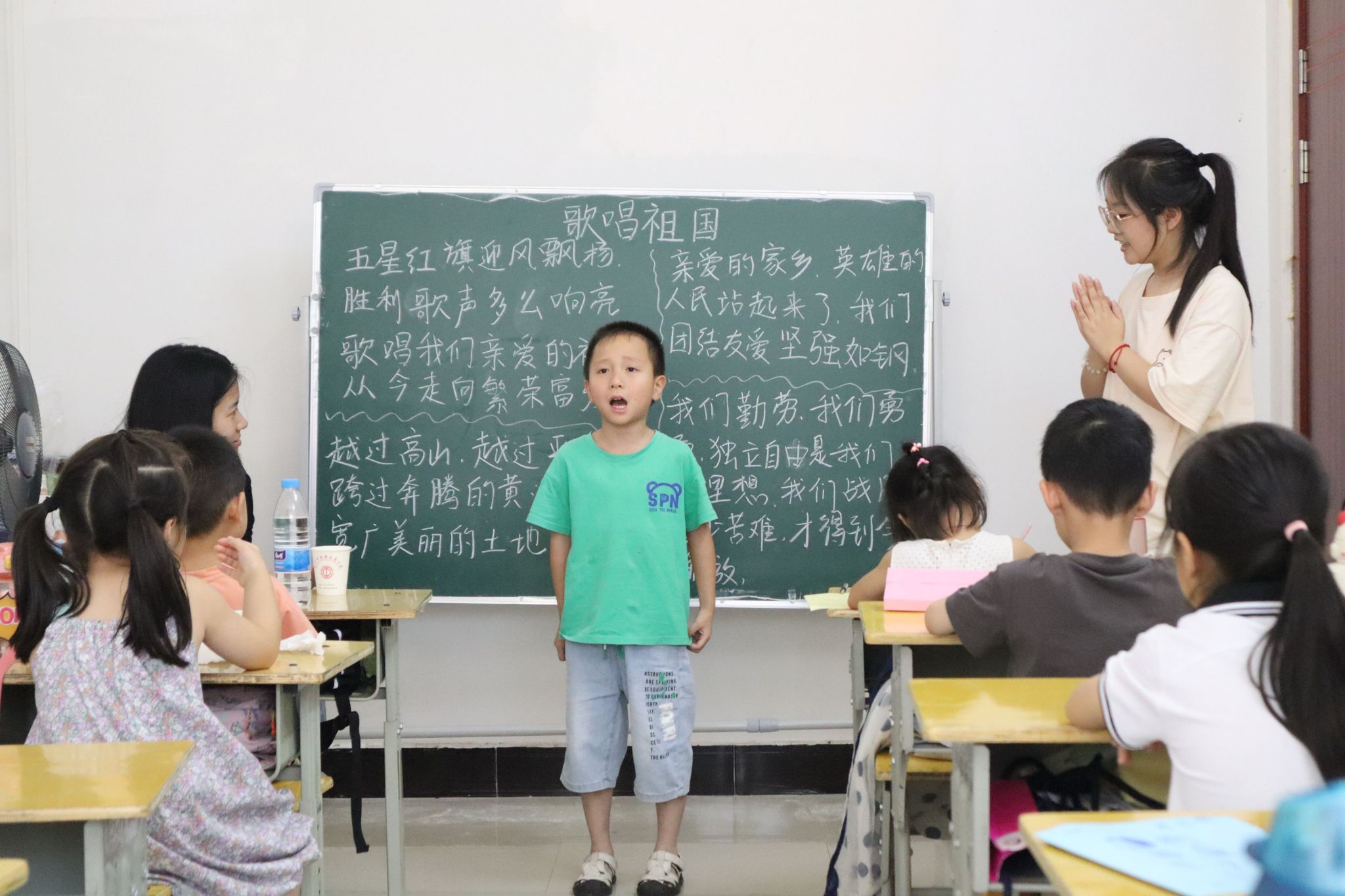 “好一朵美丽的茉莉花,芬芳美丽满枝桠,又香又白人人夸……”教室里,孩子们跟随着音乐伴奏齐声合唱,一首江苏民歌《茉莉花》在教室里久久回荡。合唱结束后赵雪妍点评道:“茉莉花这首歌给人一种轻盈活泼的感觉,孩子们很喜欢它优美平和的旋律,都唱得婉转而细腻。”赵雪妍表示民歌是中华民族音乐的精华,体现了各个地区与民族的风土人情与文化底蕴,学唱民歌能够了解到当地的传统文化。基于孩子们对民歌表现出来的兴趣,赵雪妍随后介绍了《南泥湾》、《阿里山的姑娘》、《浏阳河》等歌曲,最后课程以一首《歌唱祖国》结尾。