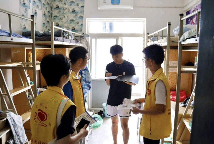 在积极做好迎新安保工作的同时,不忘开展安全教育宣传,组织安委会志愿者主动深入新生宿舍,进行安全巡查,开展防诈骗宣传,发放《防骗宣传手册》,引导新生们下载国家反诈APP,告知新生派出所和保卫处电话,以便新生遇到安全问题时能及时上报处理。主动为入校新生提供服务,帮助学生搬运行李,开展“伴随保障”工作。