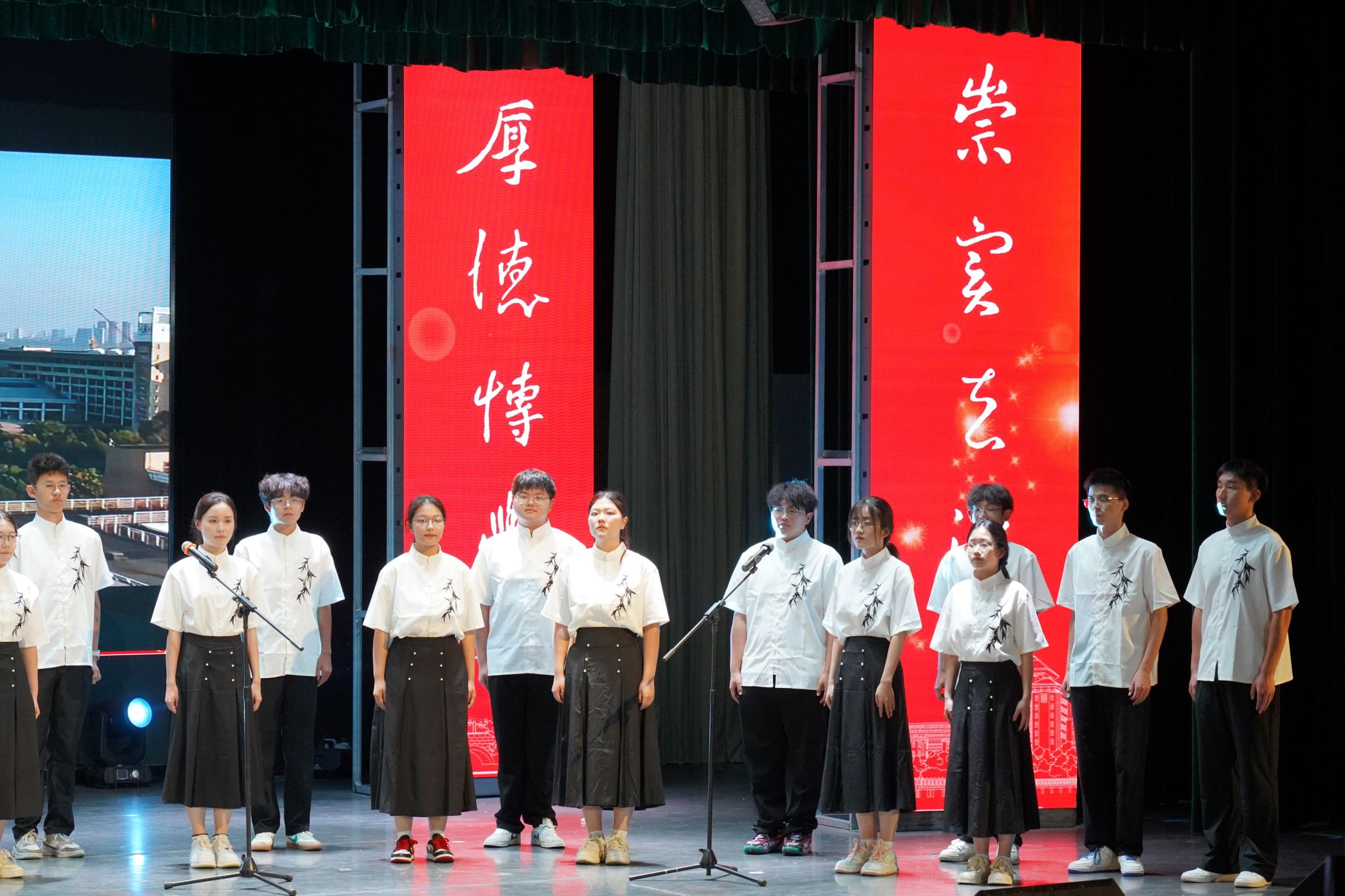 “没有研讨会的周末,我坐立难安!”幽默诙谐的诗朗诵点燃了现场欢乐气氛。音乐兴趣班学生合唱的《遇见》,瞬间勾起2025届毕业生对武科大四年时光的回忆,大家纷纷举起手机,随着节拍轻轻摇曳。